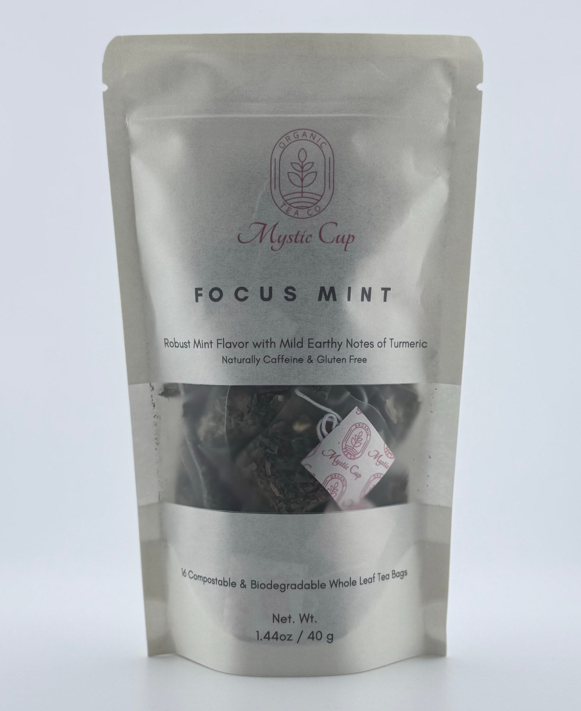 - Focus Mint- Herbal tea with robust mint with mild earthy notes of turmeric.