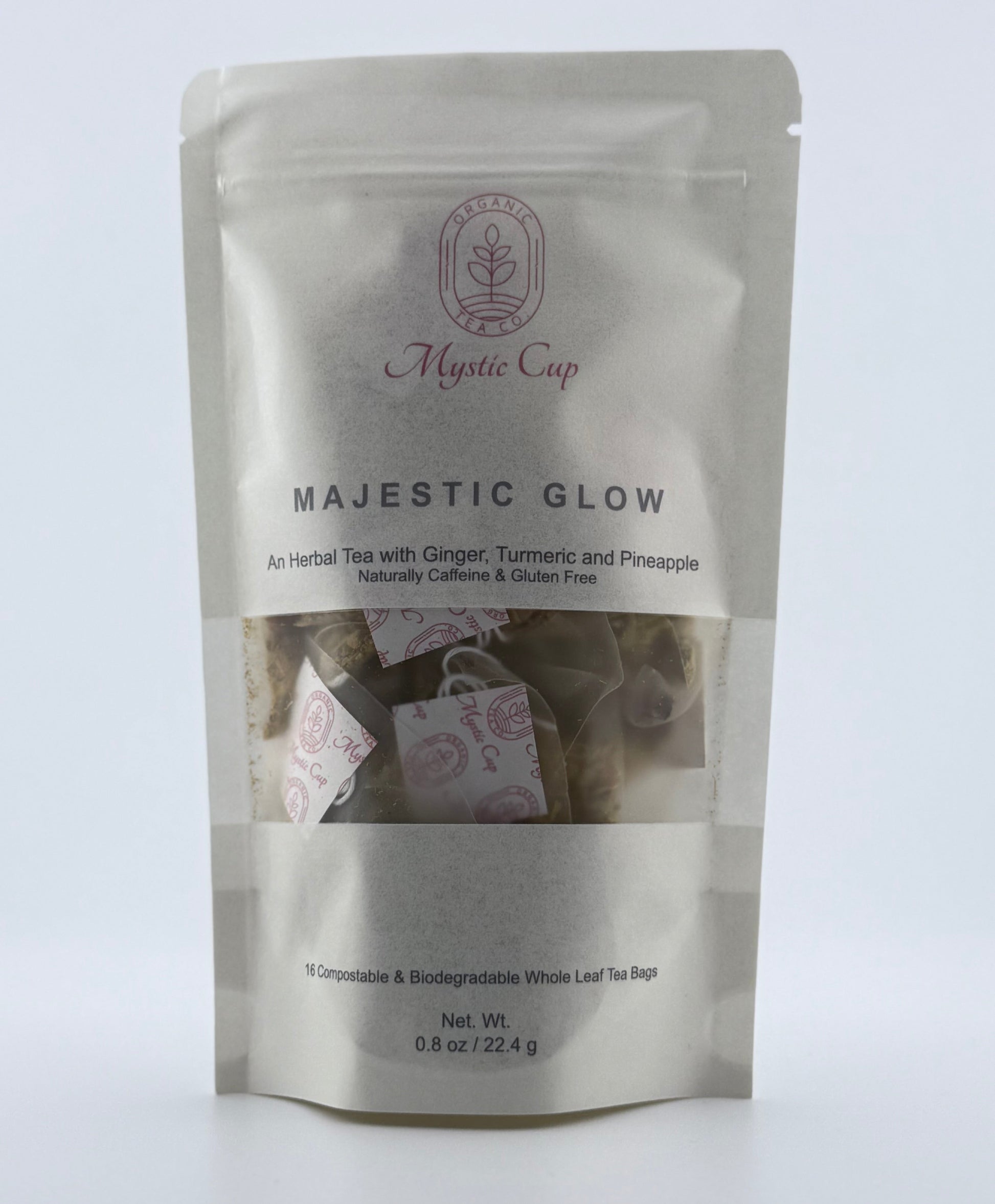 - Majestic Glow-Herbal tea with ginger, turmeric and pineapple.